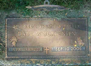 Dale W. Jorgensen, <http://www.findagrave.com/cgi-bin/fg.cgi?page=gr&GRid=63237610> Birth: Apr. 19, 1922, Kearney County, Nebraska, USA Death: Sep. 10, 2006, Hastings, Adams County, Burial: Sunset Memorial Gardens <http://www.findagrave.com/cgi-bin/fg.cgi?page=cr&GRid=63237610&CRid=101514&> Dale W. Jorgensen, 84, died Sunday, September 10, 2006 at Mary Lanning Memorial Hospital from complications of West Nile virus. Dale was born April 19, 1922, on the family farm in Kearney, County, near Osco, Nebraska to Byron David & Ethel Christine (Ostergaard) Jorgensen. Dale graduated from Holstein High School in 1939. and also from Hastings Business College. He served in the United States Army Air Corp during World War II and the 41st Infantry Division from January 1942 to January 1946. On May 10, 1948, he married Virginia Smydra at St. Mary's Cathedral, Grand Island, Nebraska. From 1959 until 1972, he owned & operated Fairmont Ice Cream Store. He then went to work for the United States Post Office, until he retired as supervisor in 1984. He was a member of St. Michael's Catholic Church, 4th Degree Knight of Columbus, American Legion, Eagles, Silver Haired Senators and NARFE, where he was President of the local chapter. He was a life member of D.A.V. & V.F.W. He was on the Board of Directors at the Hastings Credit Union for 20 years. Dale was preceded in death by his parents.