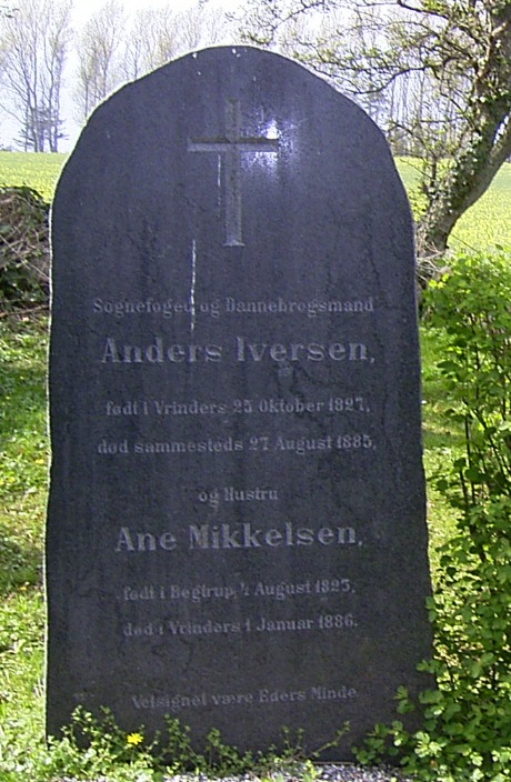 Ane blev gift med Anders Iversen, søn af Iver Andersen og Ane Pedersdatter. (Anders Iversen blev født den 25 Okt. 1827 i Vrinners, Rolsø, Mols, Randers, døde den 27 Aug. 1885 i Vrinners, Rolsø, Mols, Randers og blev begravet i 1885 i Rolsø, Mols, Randers.)