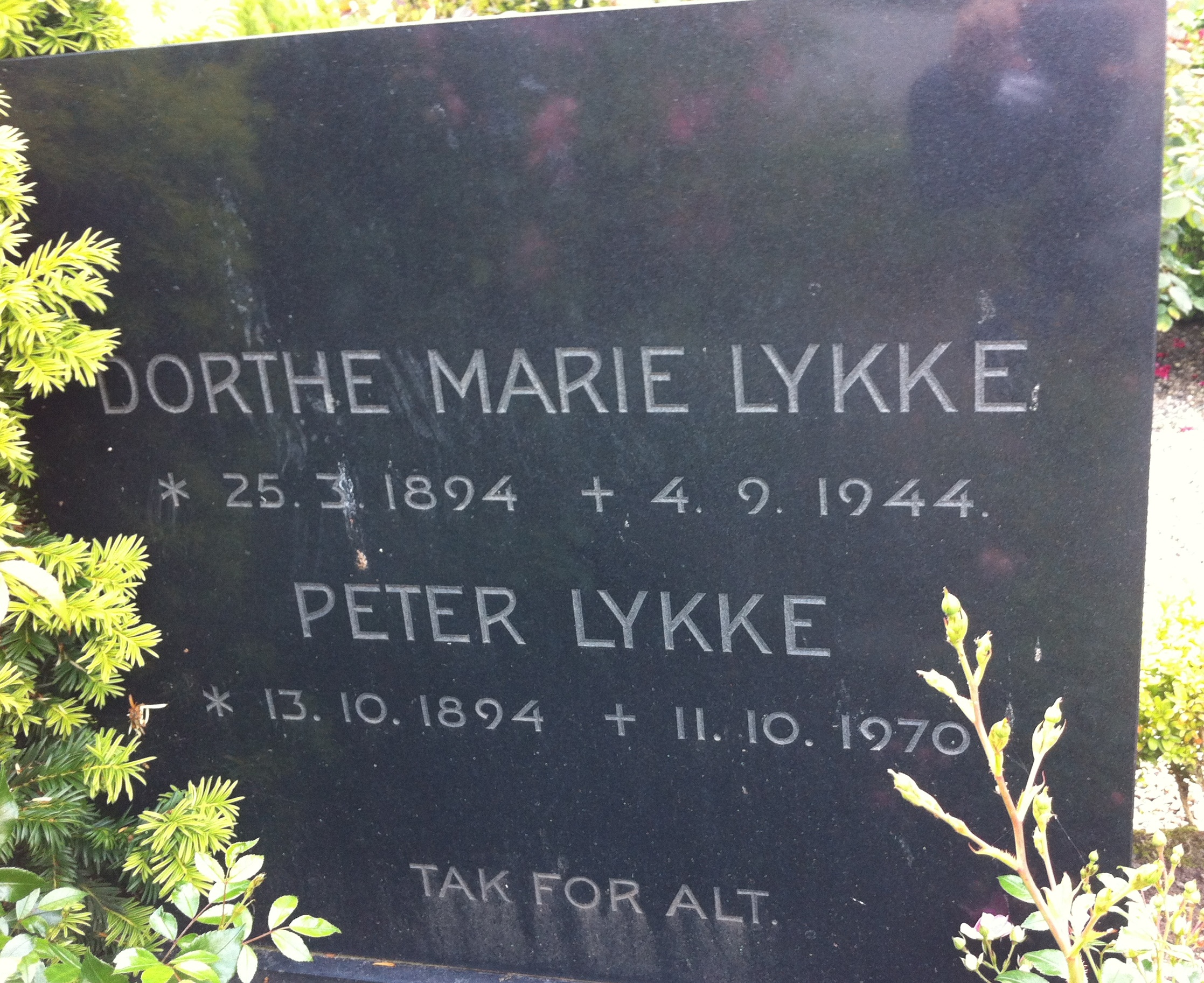 AO, KB-Tved, opslag 14, side 14, nr. 17, Fødte 1894, 13. Oktober, Dejret By, Peter Marinus Jensen Lykke, døbt 23. December 1894. Forældre: Husmand Rasmus Jensen Lykke i Dejret og Hustru Karen Sørensen, 34 Aar gl. v. 28.November 1884. Faddere: Kone Kirstine Marie Petersen, Dejret, Kone Mette Kathrine Jensdatter, do, Gaardmand Niels Sørensen, do, Gaardmand Jens Peter Rasmussen Lykke i Dejret og Barnets Fader.
