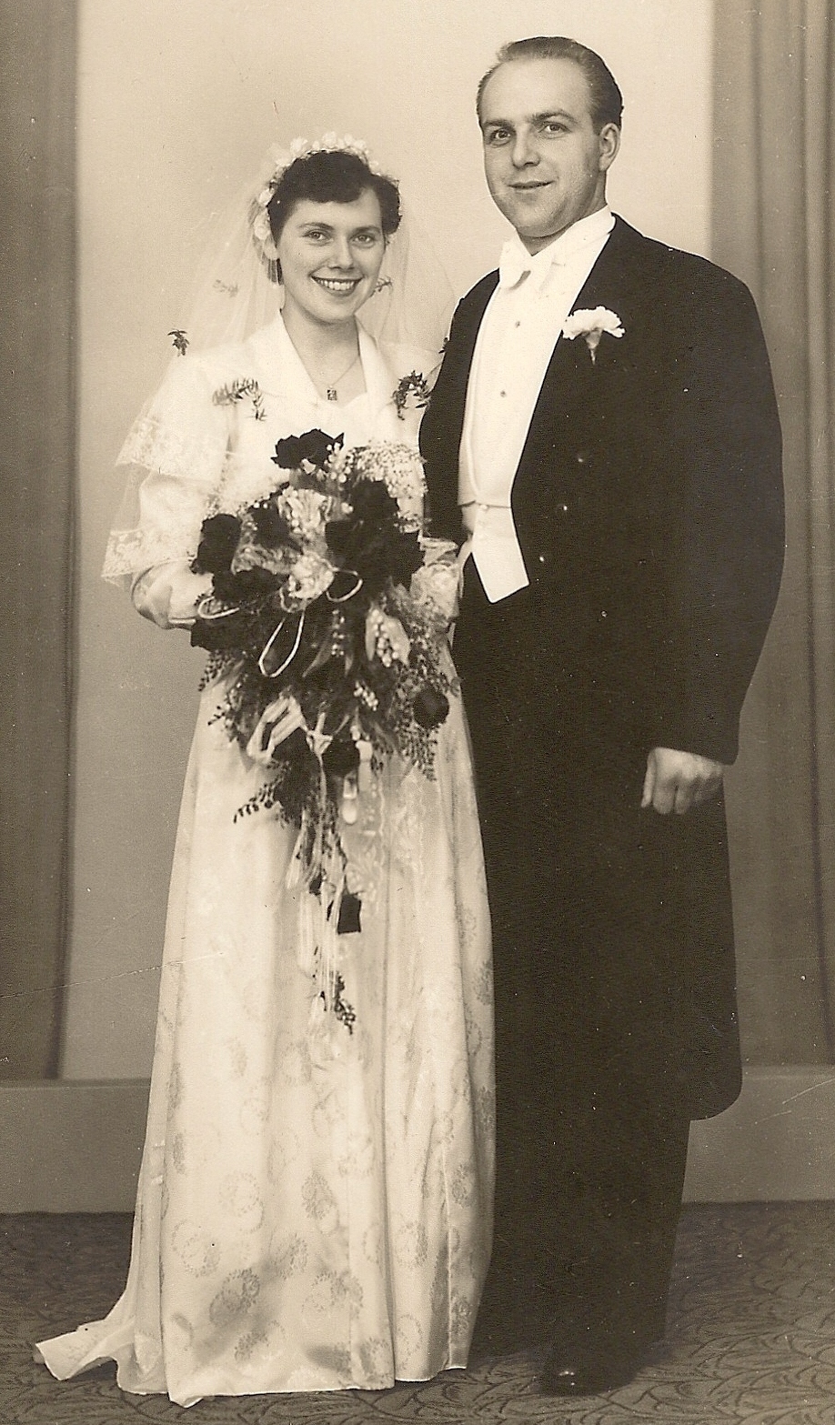 AO, KB-Rødding, Nørlyng, Viborg, opslag 99, side 175, nr. 5, Viede 1953, 5.December i Rødding Sogn, Ungkarl Svend Marinus Andersen, født i Feldballe Sogn, 1928, 13.oktober. Bogholder af Bregnet Sogn, Thorsager. Forældre: Gårdejer Kristian Frederik Valdemar Andersen og hustru Ane Elisabeth Rasmussen Hesselballe pr. Hjortshøj. Pige Vera Jensen, født i Elsted Sogn, 1931, 19.august, Klinikassistent af Bregnet Sogn, Thorsager. Forældre: arbejdsmand Johan Just Jensen og hustru Petrine Marie Nielsen Stigsen, Rønde. Vidner: brudeparrets fædre.